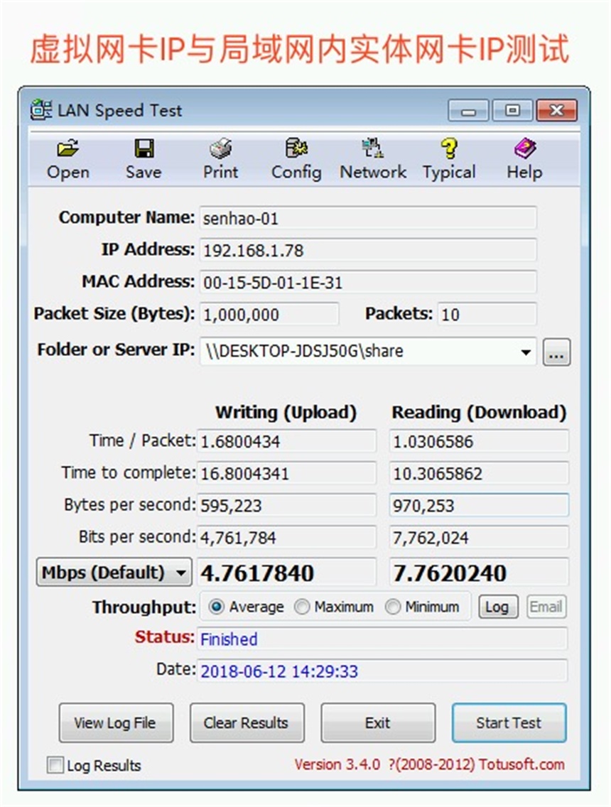 虚拟交互机内部IP与内网其它实体网卡IP速率测试